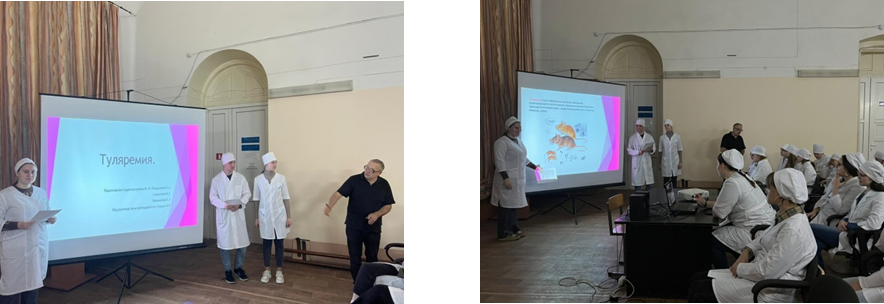 21.11.2022 студенты - волонтеры под руководством преподавателя Куцева Н.П. провели профилактическую беседу со студентами на тему: "Туляремия". Студенты узнали, что туляремия – это острое инфекционное заболевание, вызываемое бактерией Francisella tularensis, что при болезни поражается кожа, слизистые оболочки, лёгкие, кишечник, глаза и лимфатические узлы, а также возникает лихорадка и выраженная интоксикация: апатия, ломота в теле и тошнота. В свою очередь, Николай Петрович ознакомил присутствующих с наиболее эффективными мерами профилактики туляремии.