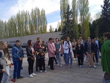 Второй остановкой стал Мамаев курган. Никакие слова и фотографии не смогут передать те чувства, которые испытываешь при посещении этого места. Ребята прошли от подножия кургана до самой его вершины: 200 ступеней – по числу дней Сталинградской битвы. Посещение Мамаева кургана совпало со временем смены почетного караула у Вечного огня в зале Воинской славы. Это часть торжественного ритуала, который установлен здесь с 1968 года. Вот уже пятьдесят пять лет караул несет здесь свою службу. Зрелище потрясающее! Ребята из роты Почетного караула Волгограда – все как на подбор. Шагают красиво. Действуют четко.