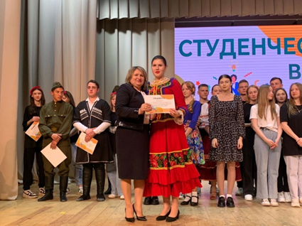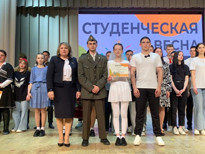 "Студенческая весна" - это конкурс, здесь выбирают лучших из лучших! Если ты действительно хочешь выиграть, то помимо таланта должен иметь оптимизм и веру в победу. Именно с таким настроем вышли на сцену студенты нашего колледжа. И результат порадовал: по направлению "Танцевальное" лауреатом I степени был награжден творческий коллектив "Пульс", по направлению "Оригинальный жанр", в номинации "Акробатика" дипломом I степени был награжден творческий коллектив "Трио". Творческая группа "Минор" была отмечена дипломом III степени. Толстопятов Максим и Елисеева Виктория были отмечены сертификатом участника фестиваля в номинации "Эстрадный танец". Мачеева Аксинья заняла I место по направлению "Музыкальное". В этом же направлении дипломом III степени была отмечена студентка Саламатина Елизавета. По направлению "Театральное", в номинации "Художественное слово" лауреатом II степени стал Сахаров Владимир, студент замечательно прочитал отрывок из поэмы Н.А. Некрасова "Мать".