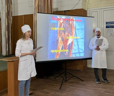 Студенты получили важную информацию о бешенстве, источниках и путях передачи инфекции, основных клинических симптомах и последствиях, узнали об особенностях поведенческих реакций больных бешенством животных, о всемирно известном ученом, разработавшим вакцину против бешенства и спасшим своим открытием человечество от этой страшной болезни. Такие мероприятия способствуют развитию профессиональных компетенций.