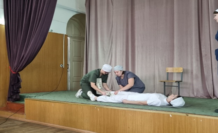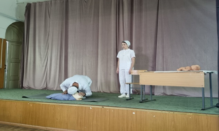 Студентами 2,3,4 курсов под руководством заведующего практикой Игнатенко Н.Г., мастера производственного обучения Андриенко Т.Ф., преподавателя Волковой Э.В. для присутствующих были организованы обучающие мастер-классы по оказанию первой доврачебной помощи: сердечно-легочная реанимация, остановка кровотечений и наложение повязок, оказание помощи при переломах, травмах груди и брюшной полости и многое другое.